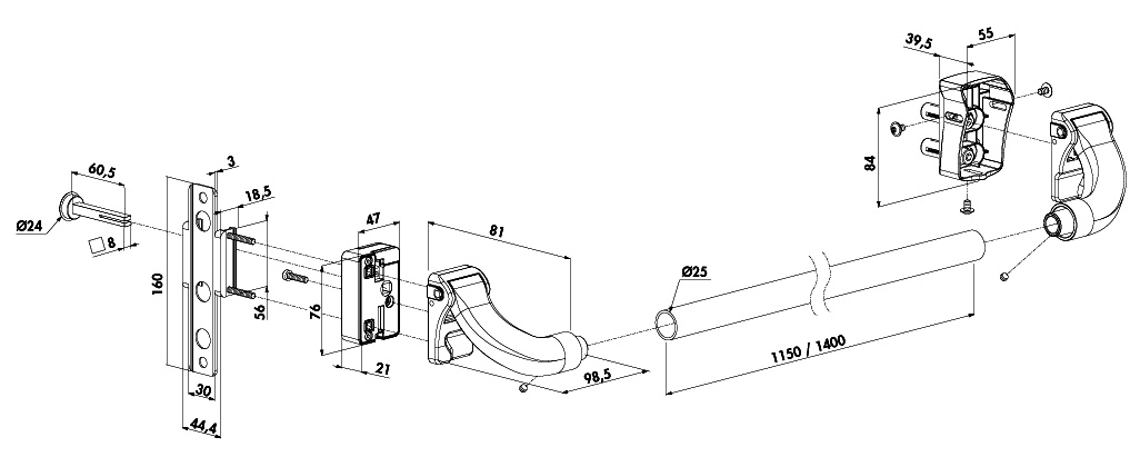 Drückerstange aus Aluminium für Aufbau-Torschlösser