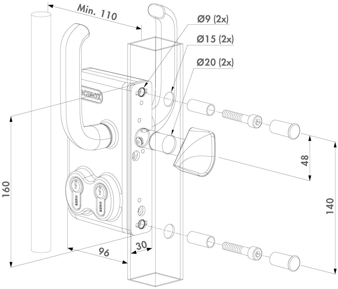 2-PZ Edelstahlanschraubschloss Locinox für 100mm Vierkantrohr