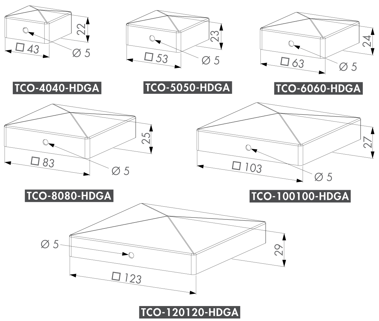 feuerverzinkte Pfostenkappe zum Aufschrauben für Profil 120x120mm